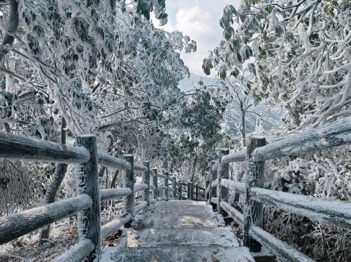 南方的冬天,总在期待一场与冰雪的邂逅。据气象预报,1月19日夜间至22日,桂林市资源县将迎来新一轮强降温,气温将跌破冰点。当严寒与水汽相遇,一场绝美的雾凇盛宴即将在桂北之巅拉开帷幕,银装素裹的冰雪秘境,正等待你奔赴这场冬日之约! 具体预报如下: 19日夜间至22日,阴天有小雨,高寒山区有雨夹雪、冻雨冰冻和道路结冰。最低气温:高寒山区零下7℃,县城零下1℃。23-24日,多云,高寒山区局地有冰冻和道路结冰。最低气温:高寒山区0℃,县城5℃。 三大核心观赏地,解锁不同冰雪浪漫 隘门界——最易抵达的冰雪童话