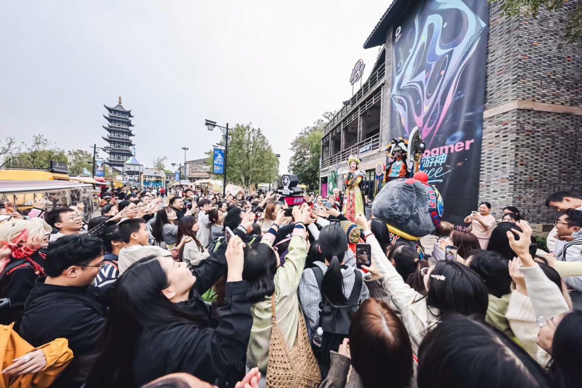 李云龙团队在乌镇戏剧节进行室外演出情景。