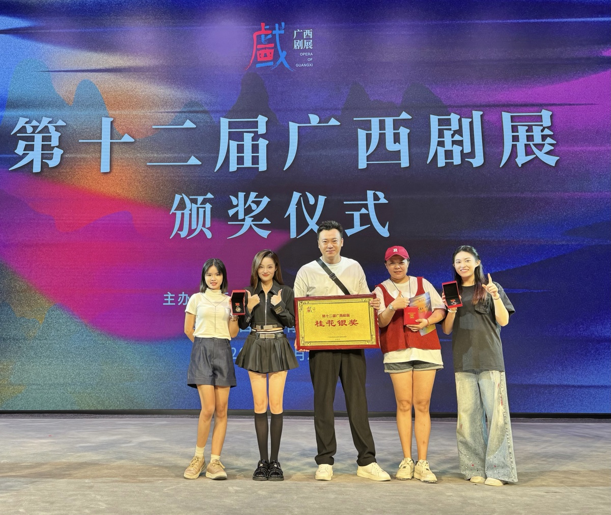 李云龙(中)导演作品《P.S.我爱你》获得广西剧展桂花银奖。图片由受访者提供。