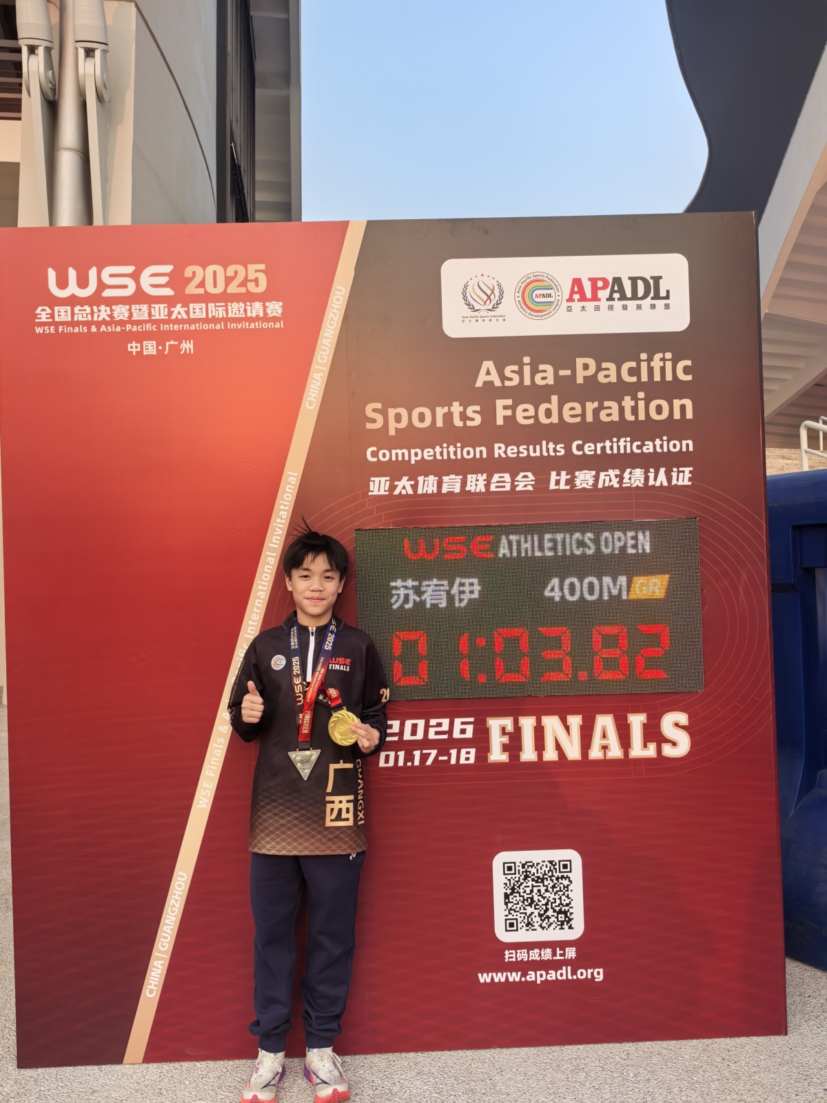 近日,WSE 2025全国田径公开赛总决赛在广州举行,来自来宾武宣的10岁女孩苏宥伊惊艳亮相。在女子U10组400米决赛中,她以1分03秒82的优异成绩夺冠,刷新了该组别赛会纪录。记者采访发现,这份成绩的背后,是她远超同龄人的自律与坚持。 为增强孩子体质,苏宥伊的妈妈从小注重培养她的体能,让她和弟弟接触足球、篮球等运动。上小学后,苏宥伊的田径天赋逐渐显现,每次比赛都能打破学校纪录。2025年参加武宣县小学生运动会时,她成功打破800米项目纪录。“这孩子骨子里带着不服输的韧劲。”苏妈妈介绍,2025年暑假,苏宥伊独自前往南宁参加为期15天的专业田径训练。凭借训练成果,她首次征战厦门田径赛事,便斩获了冠军。