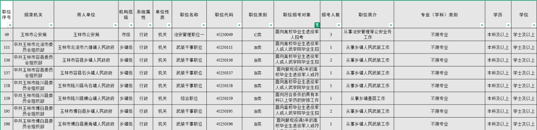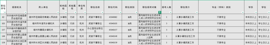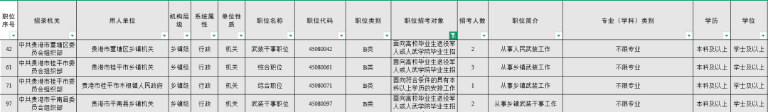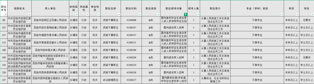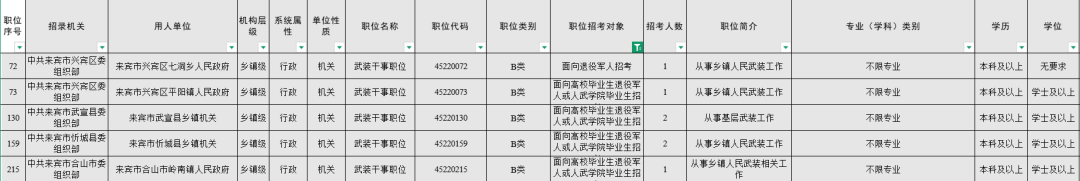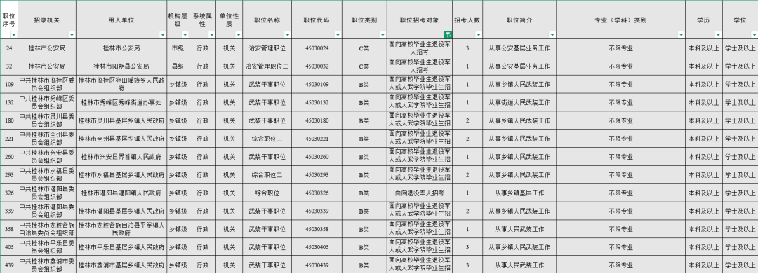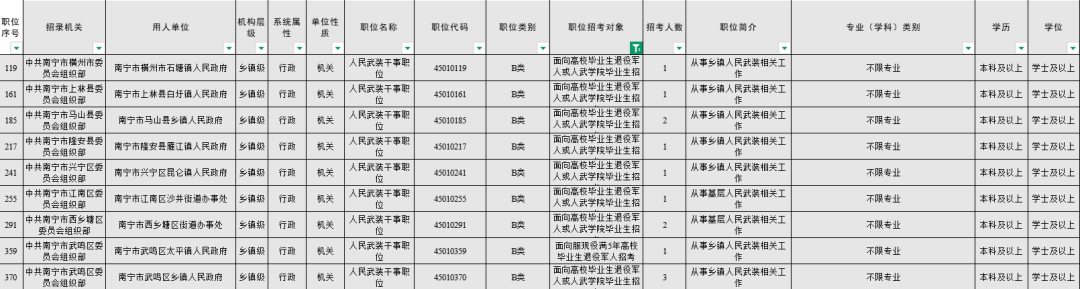 广西壮族自治区2026年度考试录用公务员公告已发布,今年区直及14个设区市定向招录退役军人185名。具体岗位和人数如下: 区直:18个岗位,招录45人