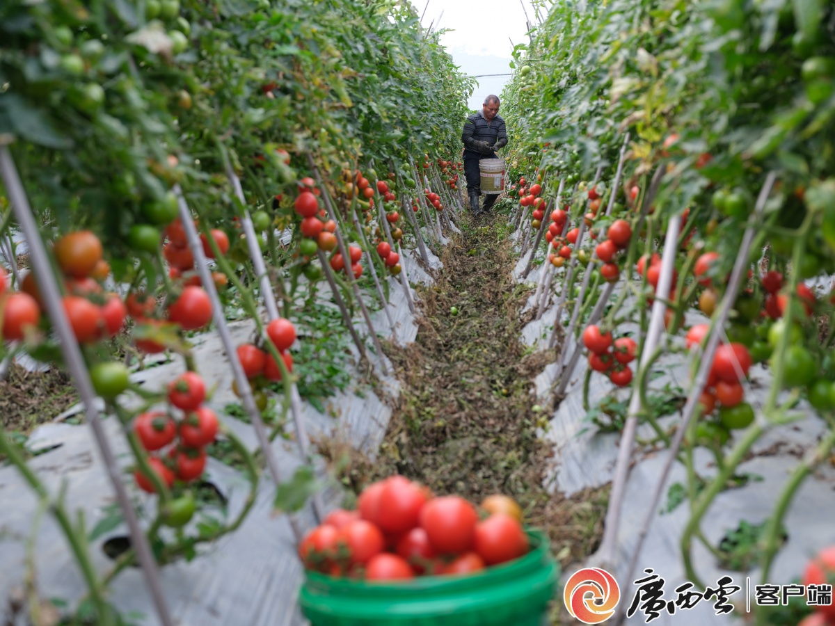 春意正浓,暖阳洒在右江河谷。田东县平马镇百林村的番茄地里,枝头果实鲜红透亮,沉甸甸地压弯了藤蔓。天刚微亮,种植户黄美好已蹲在垄间熟练采摘。“今年合作社收购价每公斤八九块,这两个月差不多挣了9万块!”她一边摘果,一边笑得眼角弯弯。