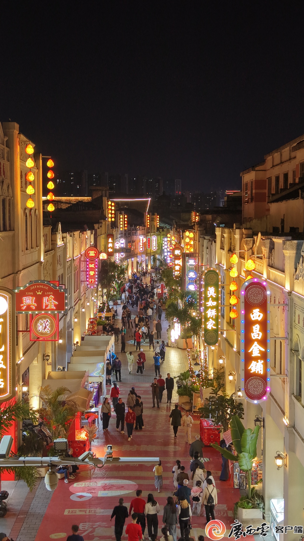 右江区解放街春节期间热闹景象。通讯员 周福宁 摄 假日期间,各县(市、区)民俗活动持续开展。右江区解放街千姿百色戏台推出“文化润景·红城戏台周周有戏”惠民演出;梵木·百色水岸城举办马年新春系列活动及“繁花市集”。隆林各族自治县举办第三届“啊哩哩”赶圩文化暨第五届“袍汤节”;田阳区开展舞龙舞狮、竹竿舞、篝火晚会等活动;德保县举办“矮马送福,吉星高照”新春嘉年华;靖西旧州景区与鹅泉景区开展舞龙舞狮迎宾活动;凌云县浩坤湖景区举办音乐节及“水上飞人”表演。 “体育+旅游”“红色+生态”等融合业态成为今年春节假期亮点。乐业大石围天坑群、凌云浩坤湖等景区推出户外徒步、速降、水上娱乐等项目。凌云县“环浩坤湖自行车户外运动线路”入选广西春节假期户外运动精品线路。