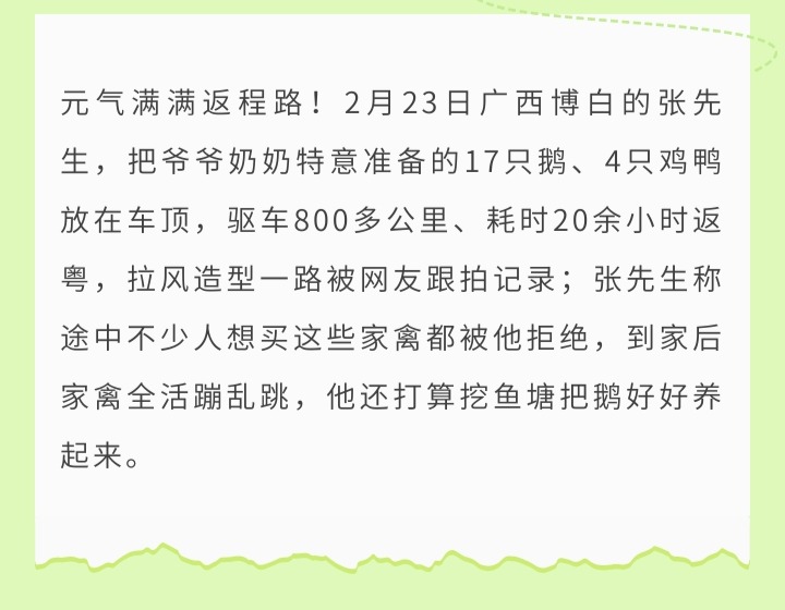 元气广西|车顶载21只家禽800公里返程 一路被跟拍 |