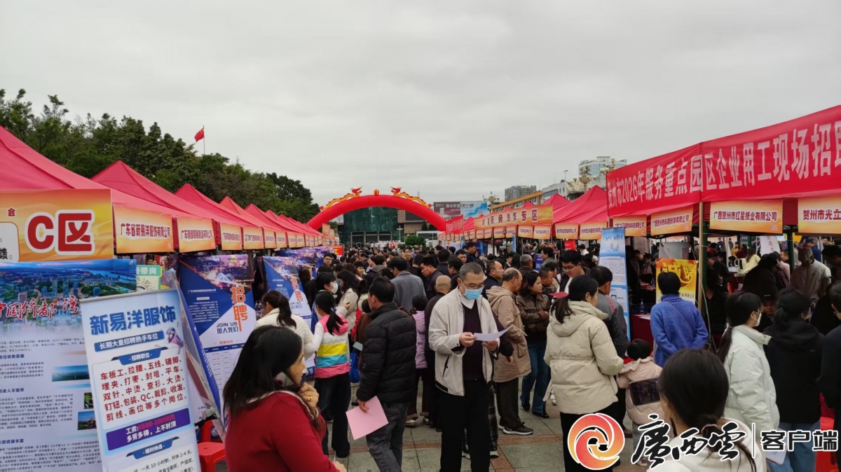 图为2026年贺州市春风行动暨就业援助季专场招聘会现场。 规模升级,供需两旺搭建“连心桥” 上午9时许,灵峰广场已是人头攒动。园区重点企业专区里,广西贺州市红星纸业有限公司、广西贺州西麦生物食品有限公司等本地龙头企业展位前围满了求职者;粤桂劳务协作专区同样热闹非凡,来自肇庆、江门、珠海等地的37家广东企业带来了丰富的岗位选择,涵盖食品加工、医药制造、电子制造、碳酸钙等多个产业。 “之前在广州做模具加工,今年想回家发展,没想到家门口就有这么多好企业。”来自八步区的求职者陈先生手中攥着几家企业的宣传单,满脸期待。本次招聘会涵盖食品加工、医药制造、电子制造、医疗教育、商贸服务等多个行业,既有传统制造业的基础岗位,也有新兴产业的技能人才需求,充分体现了贺州产业发展的蓬勃活力。 AI赋能,智慧就业解锁“新体验” 招聘会现场,一个特殊的区域吸引了众多年轻人的目光——“AI+就业”线上自助区,“科技+服务”成为本次招聘会的一大亮点。 现场同步亮相由广西人才网开发的广西就业AI交互一体机,以及广东智通人才集团带来的AI就业智慧终端两大智能设备。求职者通过AI一体机体验模拟面试、简历优化、就业指导等一站式智能就业服务;还可体验15分钟就业圈地图、职业分析、职业测评等智能就业服务。 图为招聘会现场工作人员指导求职者体验广西就业AI交互一体机、AI就业智慧终端。 “刚才通过AI模拟面试,系统给我指出了自我介绍时的几个改进点,很实用。”刚毕业的大学生小黄在体验后连连称赞。科技感十足的就业服务让求职变得既高效又贴心,也让求职者真切感受到智能化就业服务的便捷与新颖。 服务暖心,多元专区织密“保障网” “投了简历还能集章兑奖,找工作也变得有意思了!”在集章兑奖互动区,求职者李女士拿着刚盖好章的集章卡,准备兑换笔记本。集章兑奖互动活动让现场氛围锦上添花,让求职者在求职的同时收获惊喜,充分调动求职积极性。政策咨询与职业指导、简历打印等服务专区前,工作人员耐心地为求职者答疑解惑,发放政策宣传资料,将就业创业补贴、技能培训、劳动维权等惠民政策送到群众手中。 同步开展的直播带岗活动,更是将招聘会的热度延伸至“云端”,线上企业招聘负责人走进直播间,推介岗位信息、解答求职者疑问,让无法到场的求职者也能“指尖择业”,实现线上线下同频共振、全域覆盖,让就业春风吹遍贺州的每一个角落。 就业导游,暖心接送铺就“返乡路” 活动现场,两辆挂着“就业导游专车”标识的大巴格外醒目。为打通服务群众“最后一公里”,八步区、平桂区组织的就业导游专车将求职者从乡镇直接接到招聘会现场,真正实现“就业服务送到家,求职不用跑远路”。“以前找工作要自己到处跑,今天不仅有专车接送,还有导游全程介绍企业和岗位,太贴心了。”坐在车上的返乡务工人员赵大哥笑着说。就业导游不仅提供交通便利,更在途中为求职者详细介绍参会企业情况和岗位信息,让求职之路更加顺畅。