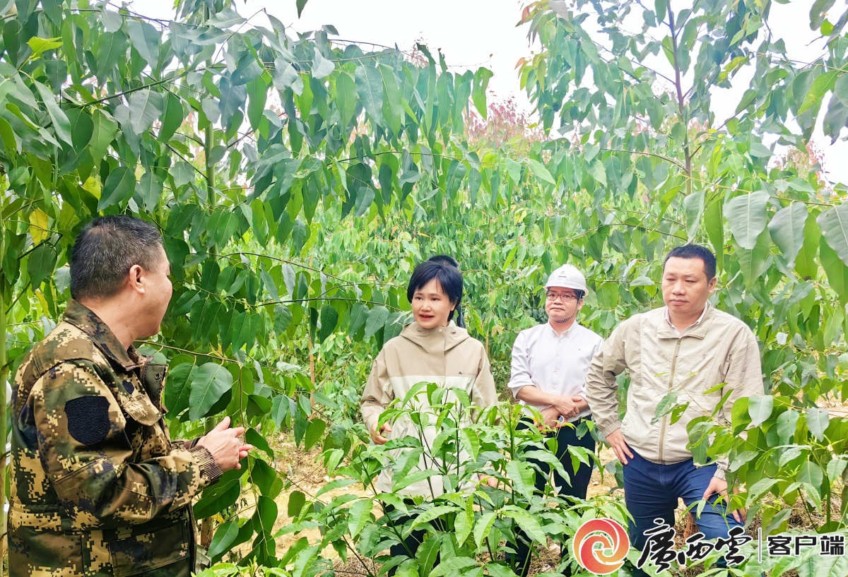 关键词:惠农 2月27日,清晨的阳光透过窗户,洒在全国政协委员,广西林业集团副董事长、总经理古俊彦的办公室。她拿起手机,打开相册,一张张满载绿意的照片便映入眼帘——那是她过去一年跋涉于八桂山林间的足迹。 画面定格在去年12月3日,寒意渐浓,宾阳县新桥镇白岩村的树林依旧生机盎然。照片中,古俊彦正专注地打量着套种在树林下的三叉苦幼苗,指尖轻触叶片,仔细向身旁的人员询问生长周期、管护细节与市场前景。“在树林下套种三叉苦,既不占耕地,又能多一笔收入。”古俊彦听得认真,把这一实践经验一一记在心里。三叉苦作为中药材,是医药公司生产感冒药剂的原料,通过与药企开展订单合作,发展林下套种,既能提升林地效益,又能带动周边农户务工增收。