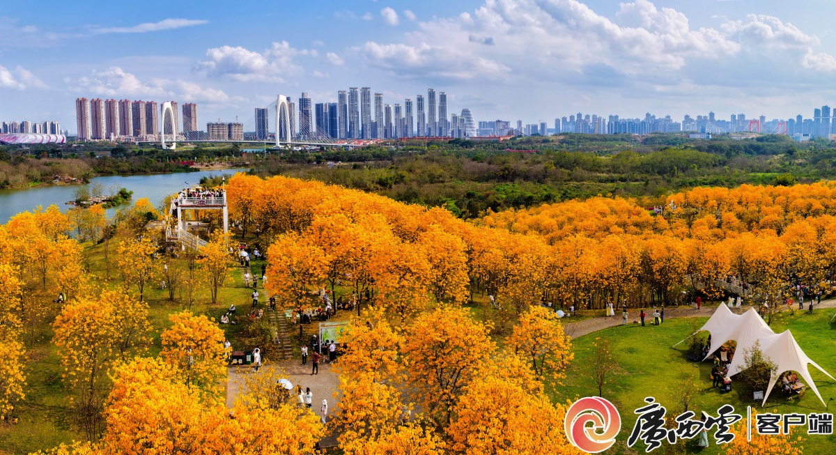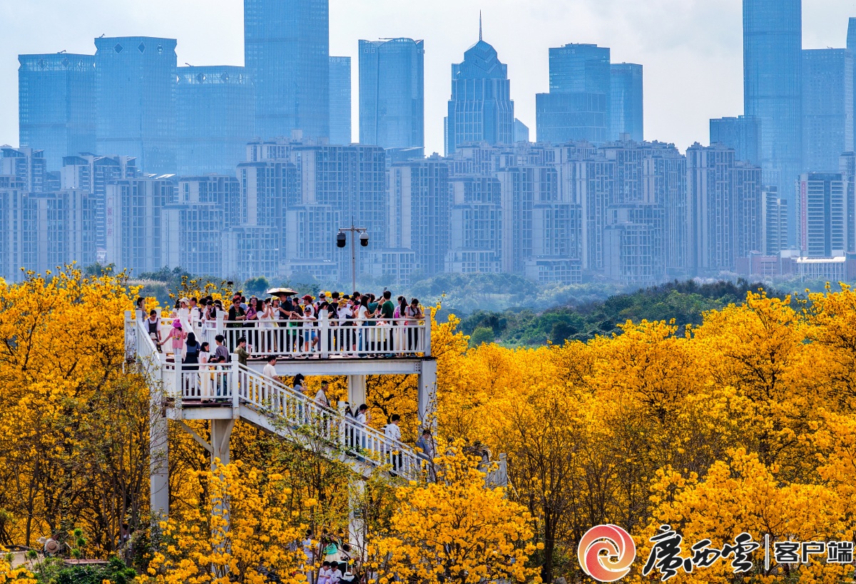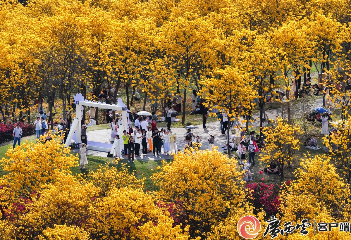 3月1日,南宁青秀山风景区内近万株黄花风铃木花海盛开,清风拂过五百亩花海,花香四溢沁人心脾,构成一幅金色的春日画卷,处处洋溢着生机与暖意。众多市民游客纷纷前来踏春打卡,赴一场春天的鎏金之约。 总监制:何运斌 监制:李伟国 初审:张颖婷 摄像:周军 后期:覃显钧 广西日报社视频部出品