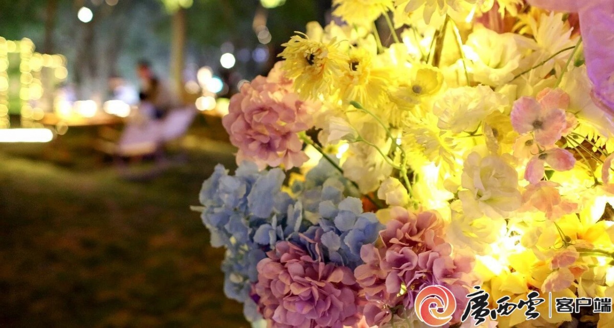 百果园外的草坪音乐会吸引了很多市民。通讯员 梁力升 摄 当晚,河边西街对岸的百果园传来阵阵歌声,一场元宵草坪音乐会正在上演。不远处的百果园同样灯光璀璨,园内摆满了鲜花,这片“花海”将成为元宵节活动的亮眼点缀。