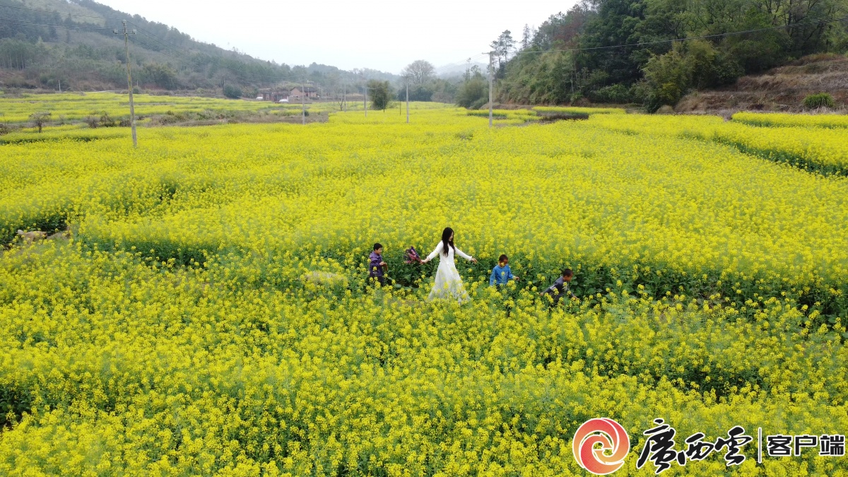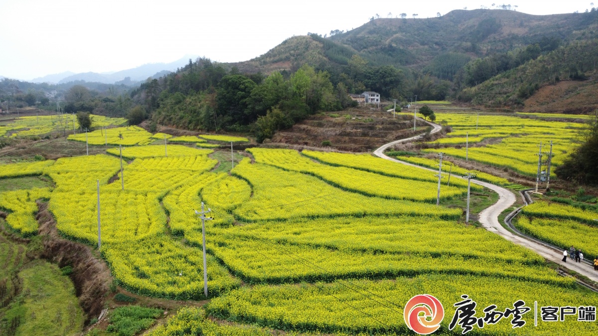 春风送暖,万物复苏。贺州市昭平县境内的油菜花进入了盛花期,在樟木林镇水龙村的农场里,连片的油菜花迎风摇曳、金浪翻滚,与蜿蜒的田埂相映成趣,构成一幅美丽的乡村画卷。 油菜花田。谢琳 摄 3月3日,记者走进农场,目之所及皆是蓬勃生机。金黄的花海不仅扮靓了美丽乡村,更成为激活乡村经济、带动村民增收的“金色引擎”,让村民在春日里收获着希望与喜悦。 农场负责人叶燕建说:“我2022年回来开始创办家庭农场,县乡农技人员经常到农场指导农业生产,种植双季稻后,就开始种油菜花,去年种植水稻670亩,年产值有130万元左右,油菜花种了300亩,预计收入有10万元。”