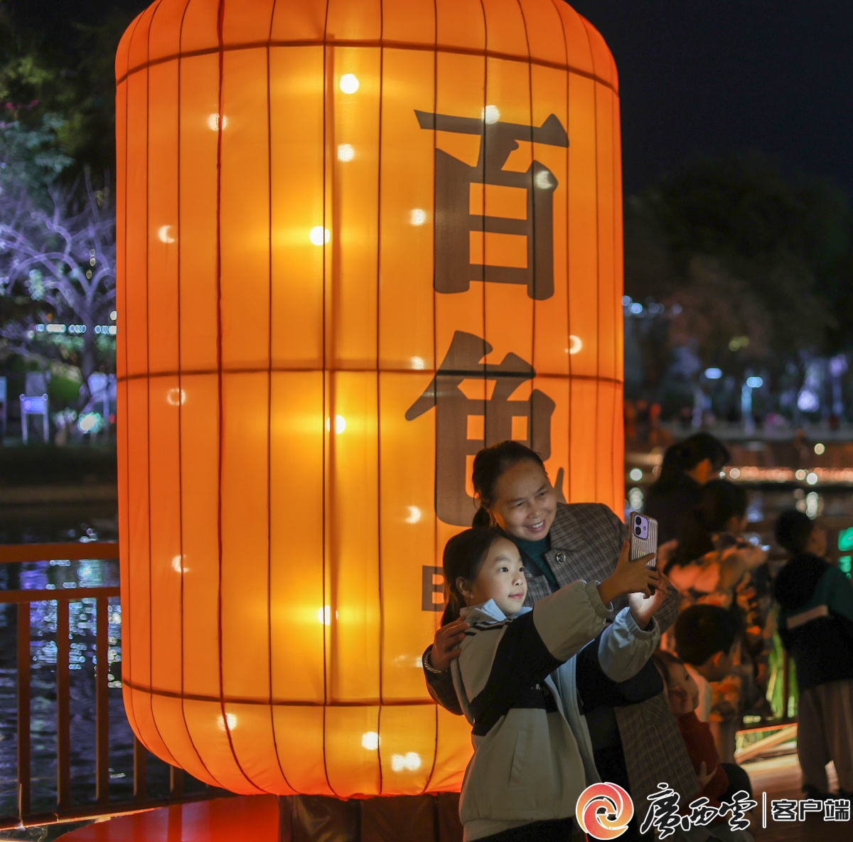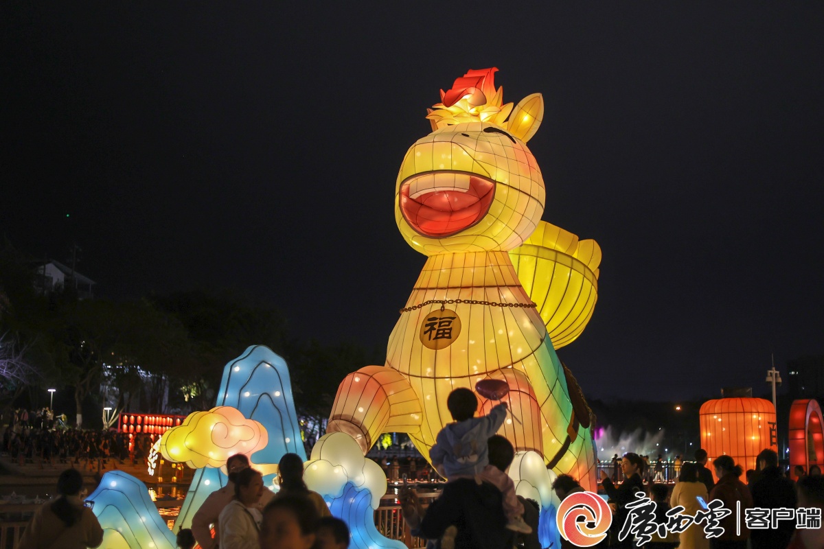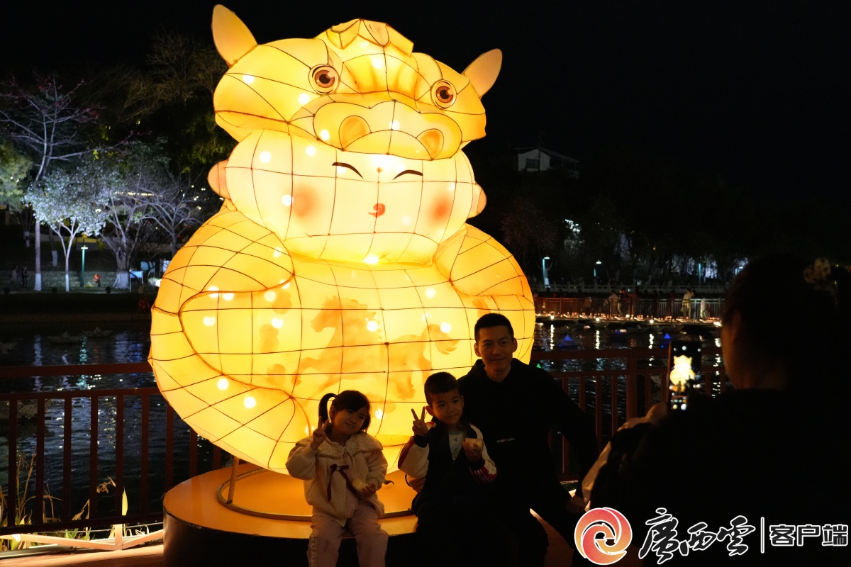 河边西街的“喜乐马”大型花灯吸引众多市民和游客驻足。通讯员 梁力升 摄 河边西街的右江麽乜大型花灯吸引众多市民和游客驻足。记者 陆旺 通讯员 黄丹丹 摄