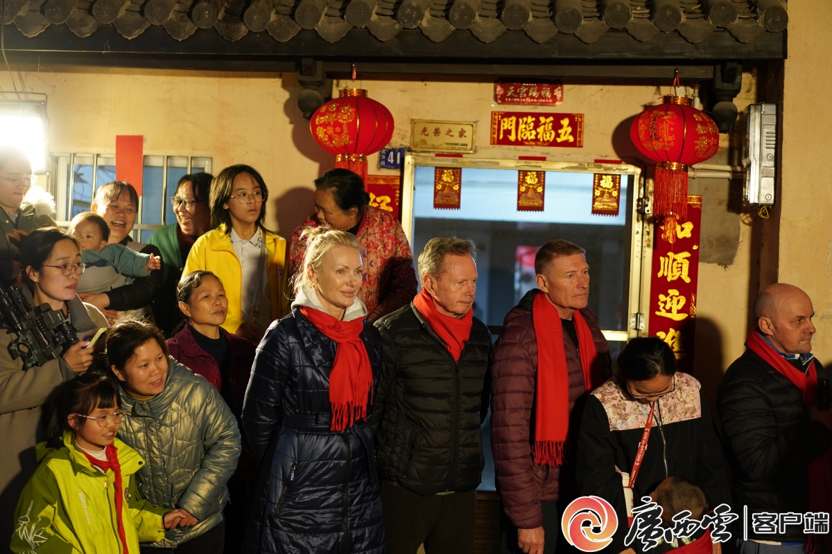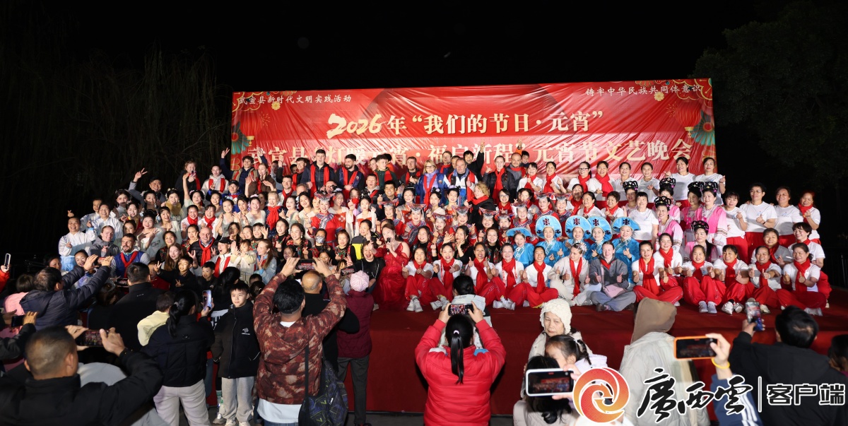老街游街表演。胡佳坤 摄 武南村舞台同样年味浓郁。晚会以非遗舞狮《狮舞吉祥年》开场,醒狮腾跃、气势十足。《欢聚一堂》《闹元宵》等舞蹈活力满满,《爱在天地间》《领航》等节目情感真挚,情景朗诵《年味儿》唤起浓浓乡愁,彩调表演喜庆热闹,为观众送上新春祝福。在武宣冬训的白俄罗斯队员受邀来到现场,感受中国传统节日氛围,并与大家共跳团圆舞。 活动合影。廖程 摄 “很幸运这次来到武宣训练,看到了美丽的七星湖,还很幸运的受邀参加你们的元宵晚会,对我们而言也十分新奇,大家都很喜欢,一切都很棒。”教练巴赫达诺维奇·安德烈(BAHDANOVICHANDREI)说道。 此次元宵活动,将非遗展演、民俗文艺与群众欢乐融为一体,既让广大市民在热闹喜庆中感受传统文化魅力,也向远道而来的外国友人展现了武宣独特的民俗风情与开放包容的城市形象。下一步,武宣县将持续办好各类惠民文化活动,不断传承和弘扬本土优秀文化,让非遗文脉薪火相传、焕发生机,让更多群众共享文化发展成果,为建设文化繁荣、和谐幸福的新武宣注入更强动力。 |
