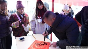 春节前夕,园区邀请了多位书法老师开展迎春送福志愿活动。老师们现场挥毫泼墨,将一幅幅寓意吉祥的春联和“福”字赠予游客,提前拉开了“纪念园里过大年”的序幕,墨香与笑声交织,让园区洋溢着喜庆的传统文化气息。