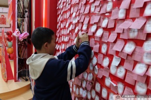 紧邻打卡点的“新春心愿墙”,是这个春节纪念馆里情感最为浓烈的地方。五颜六色的便利贴密密麻麻地贴满了展板,形成了一道独特的“心语风景线”。