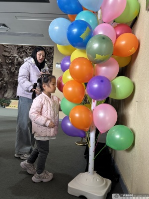对于跟随家长前来的孩子们来说,纪念馆之行还有一份特别的期待。在一楼前台,只要关注纪念馆的官方抖音号,就能领取一个印有馆标的定制新春气球。