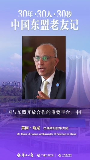 30年·30人·30秒丨巴基斯坦驻华大使莫因·哈克:中国和东盟市场巨大