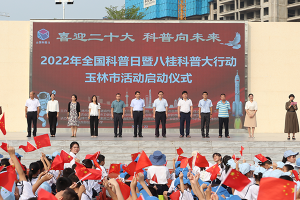 9月23日,2022年全国科普日暨八桂科普大行动玉林市活动启动仪式在玉东新区第四小学隆重举行。玉林市科协等单位领导出席活动。玉林市各县(市、区)科协主席、玉东新区第四小学、玉东新区第二初级中学全体师生以及科技志愿者、群众代表等近2000人参加活动。