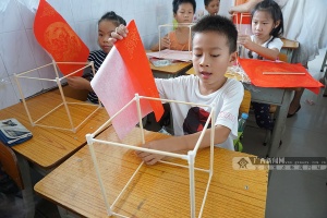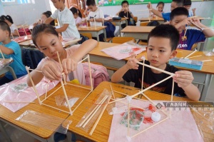 学生们动手制灯笼,喜迎中秋节。广西新闻网通讯员 莫邵祯 杜海萍摄