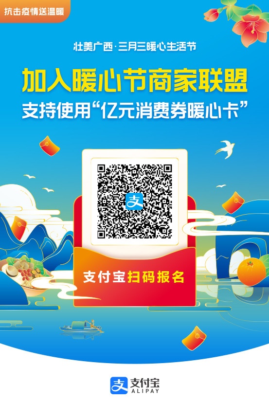 线上线下联动,政企平台合作,联手加快恢复消费市场。“壮美广西·三月三暖心生活节”活动是疫情后全国首个利用互联网平台,在全区范围内开展的“提振消费信心,释放消费活力”的创新实践。阿里巴巴将通过整合其旗下各平台板块资源,联动30万家线上线下门店同时开展销售活动。自治区、市、县三级协同,组织近4000家区内限额以上商旅文企业参与,通过企业让利促销线上引流,拉动线下消费,加快恢复消费市场。