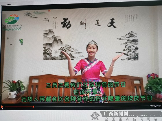 广西新闻网南宁3月28日讯(通讯员 韦刘霞)为积极应对新冠肺炎疫情影响,给学生营造温暖的节日氛围,丰富学生居家生活,近日,南宁市银杉路小学开展了“童心战疫 丹青传情”三月三主题活动,孩子们以清纯甜美的嗓音、笔墨丹青之力,抒发对战疫胜利的坚定信心和对“三月三”的憧憬之情。