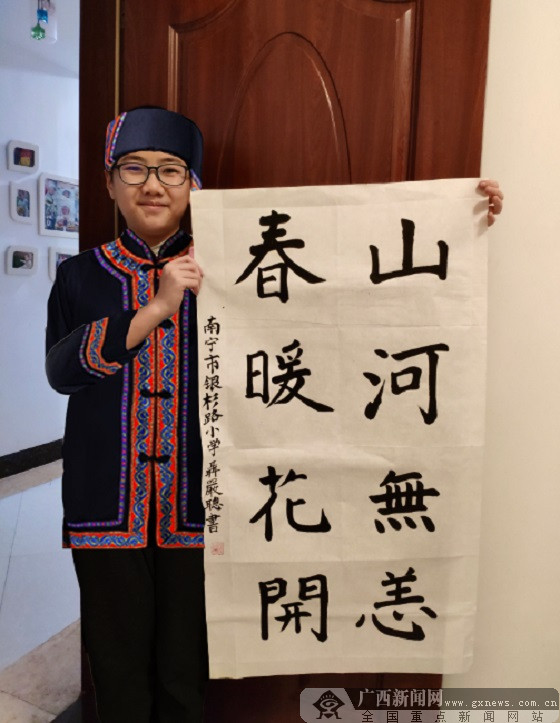 活动中,银杉路小学的壮乡阿妹李欣乐以一段特别的手舞与大家一同庆祝节日,四(4)班的壮家小哥哥潘泺泽则给大家带来了歌曲《小蜻蜓》为中国加油;有书画爱好的同学们,更是用自己的手中的笔表达对抗疫英雄的崇敬和对祖国家乡的美好祝愿。