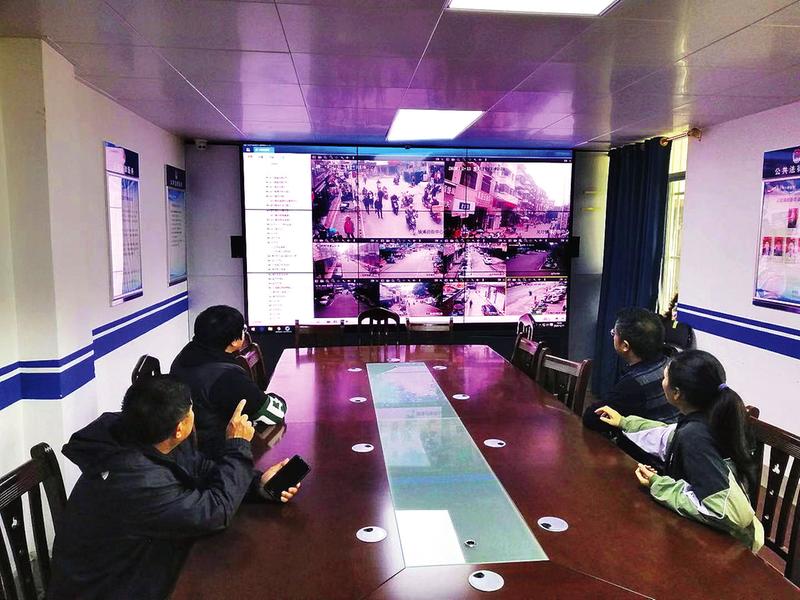 吴圩镇综治中心工作人员应用监控系统开展视频巡查。