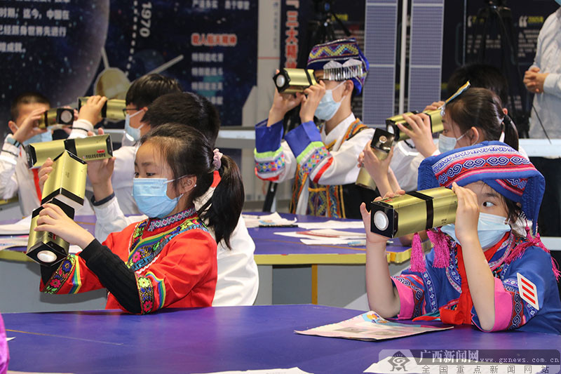 同学们动手制作简易望远镜。 此外,广西科技馆还积极组织区内科普大篷车运行单位、流动科技馆各巡展站点,通过天地对比实验、集中观看等形式共同参与本次太空授课地面课堂活动。据不完全统计,截至当天17点,全区共有17个流动科技馆巡展站点,15台科普大篷车分赴所辖区学校组织参与活动。 据悉,广西科技馆作为“天宫课堂”第一课在全国设立的四个分课堂之一,在去年12月9日授课活动结束后,整合利用太空授课资源、航天科普资源及场馆科普资源,持续推出系列航天主题科学教育活动,目前已策划开展14期不同主题的“天宫课堂”系列延伸活动,向广大青少年传播普及空间科学知识。 接下来,广西科技馆将以“天宫课堂”第二课地面活动为契机,进一步发挥场馆科普阵地的示范引领作用,深入整合多方资源,带领更多科普场所、科技工作者、学校投入到航天科普活动的策划、组织和实施当中来,使“天宫课堂”系列延伸活动覆盖面更广、参与度更高,达到期期有新意,堂堂有亮点的效果。(王伯勇 潘丽) |