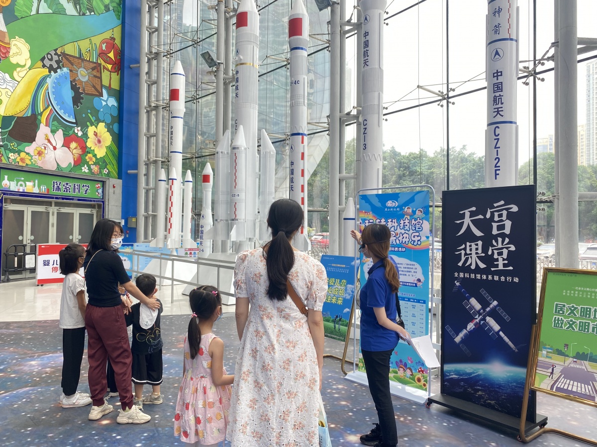 在展品《长征火箭系列》的主题辅导中,科技辅导员联系我国航天事业先辈们的奋斗历程,讲解了长征一号至长征七号的发射任务,与观众一起感受中国航天精神;在展品《十赌九输》的体验式辅导过程中,用直观的现象,引导观众明白劳动才是致富的正途。