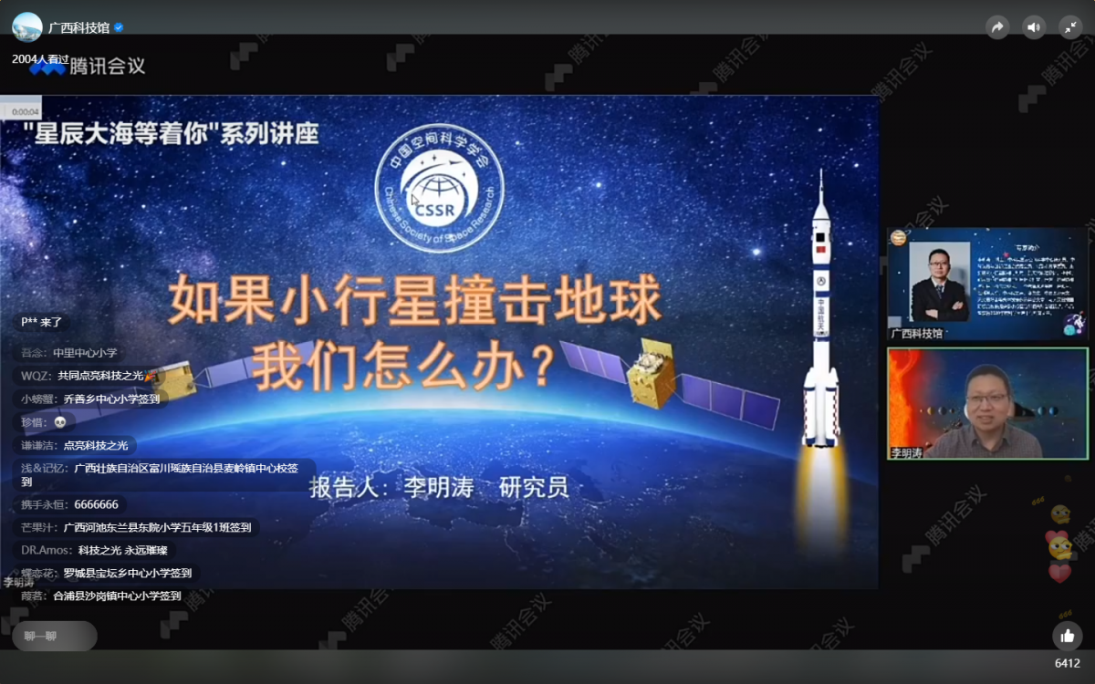 中科院国家空间科学中心研究员李明涛博士在启动仪式上进行讲座直播。陆世高 摄