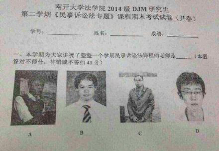 南开法学院一考题要求学生选对任课老师照片。