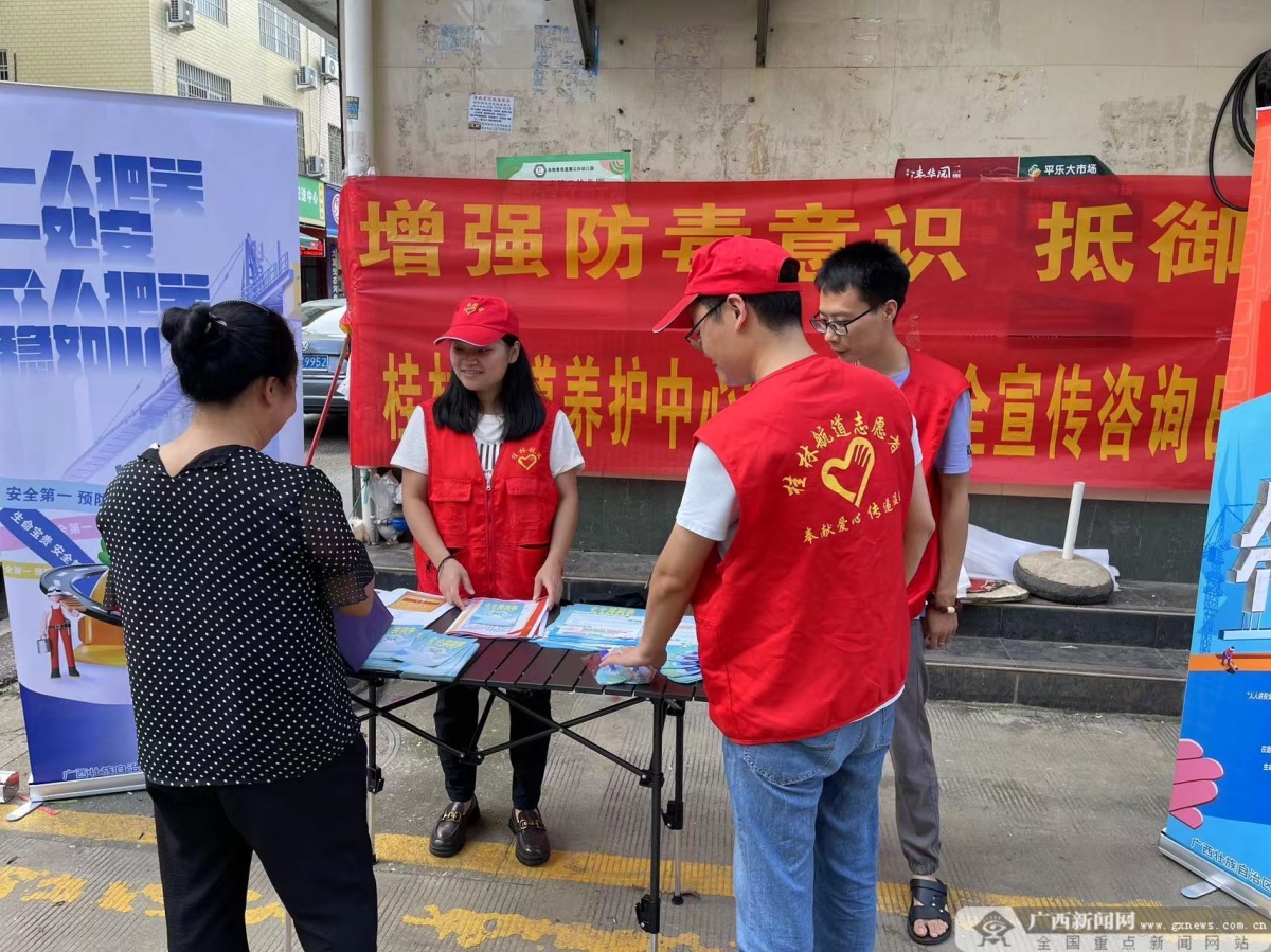志愿者向群众讲解毒品防范方法。通讯员 唐国丽 摄