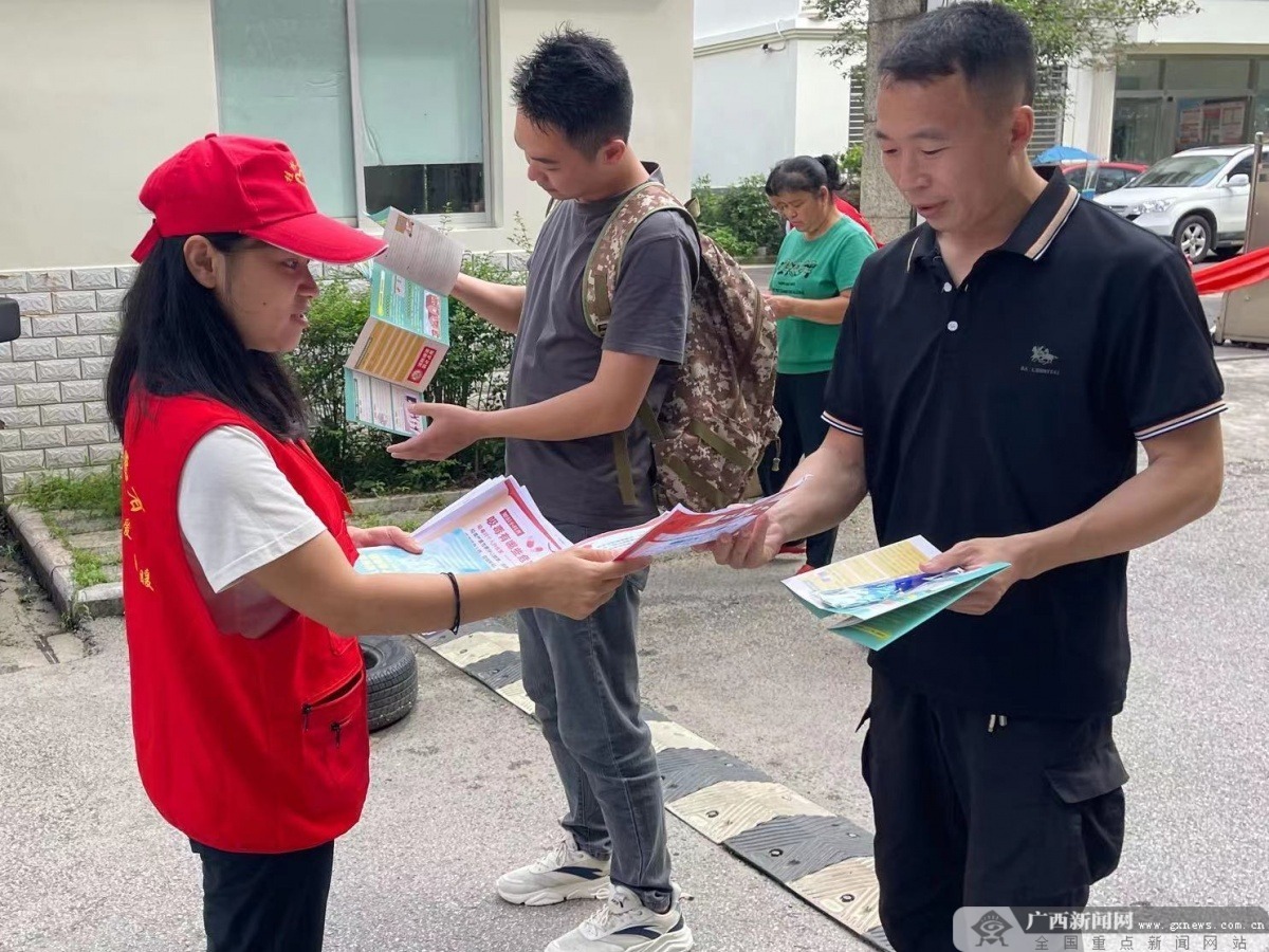 志愿者向群众发放禁毒宣传资料。通讯员 唐国丽 摄