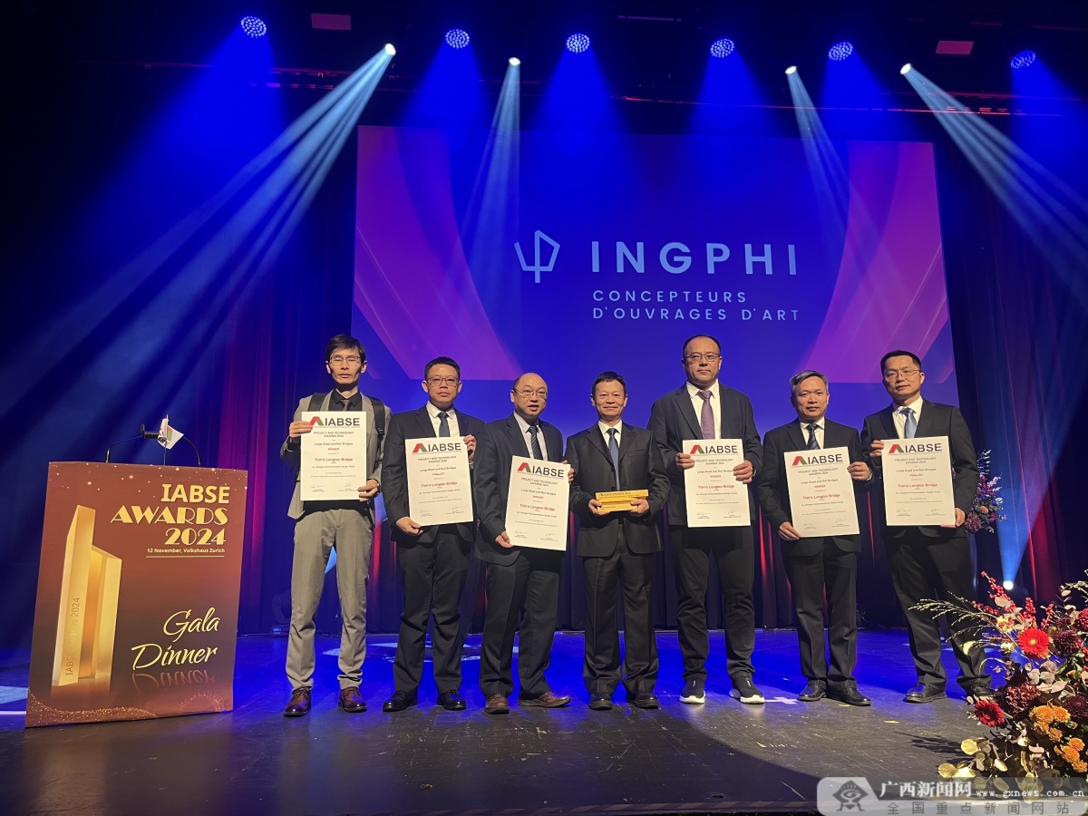 广西云-广西日报记者 罗婧 赵超 刘琴 当地时间11月12日,2024年国际桥梁与结构工程协会(简称IABSE)颁奖典礼在瑞士苏黎世举行,天峨龙滩特大桥从众多参与比拼的国际大跨桥梁中脱颖而出,荣获“大型公路与铁路桥最高奖”。