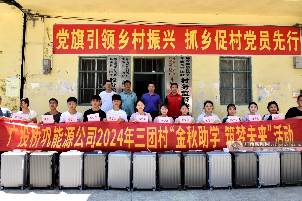 “金秋助学 筑梦未来”活动合照。 千里沃野绘新景,最是烟火抚人心。如今,在三团村这片充满希望的土地上,正不断凝聚丰收的期望,乡村宜居宜业、产业蓬勃发展、农民富裕富足的美丽画卷正徐徐铺开……广投桥巩能源公司将继续扛起乡村振兴工作的责任与担当,继续发挥企业优势,助力三团村特色产业发展壮大,文明乡风培育形成,共同推动和美三团村振兴的步伐更加稳健有力。 |