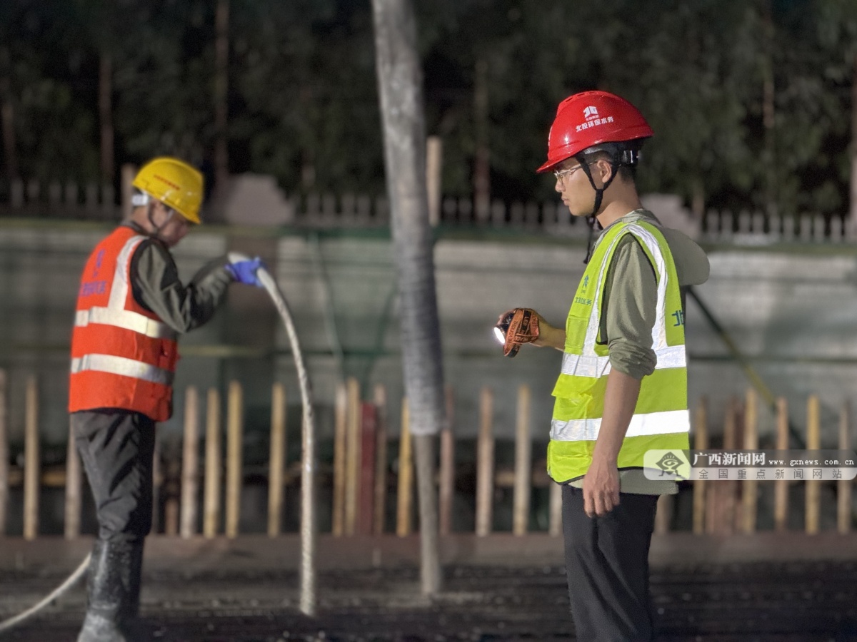 施工人员正在进行清水池浇筑作业 安全护航,三维管控筑牢生命防线。 “抓安全就是抓效益!”项目总工程师赵孙剑带领团队以“三维管控”严控项目安全生产。实施“智能监控全域覆盖”,厂区采用3套可视化监控设备,确保对人员安全作业的24小时严密监控,严格管控违规操作等12类潜在风险行为。实施“动态监测实时追踪”,全体工作人员配备施工记录装置,对工程施工过程进行全程监控。实施“网格定位精准管控”,采用“网格化”管理模式,安全员执行24小时排班驻守现场,累计开展安全晨会班前教育143场,实现30万工时“零事故”。 随着清水池主体结构提前27天封顶,4万吨/日净水厂工程项目自2024年11月开工以来,已完成35%主体工程量。建成后将实现铁山港工业区供水能力从2.5万吨/日到6.5万吨/日的跨越升级,为千亿级临港产业集群发展注入澎湃动能。 站在清水池之巅极目远眺,V型滤池正拔节生长,气浮池钢构凌空飞架。环保水务建设者将继续以“干”的劲头、“抢”的状态、“实”的作风,全力冲刺工期目标,用匠心筑造精品工程,以“一体化、规模化、智慧化”的发展思路构建北部湾绿色供水体系。 |